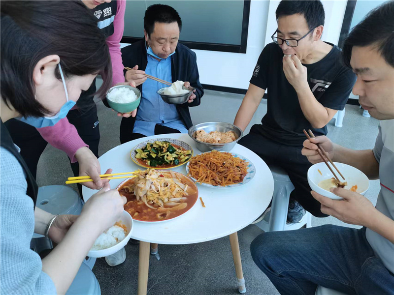 從2022年4月底復工以來,寶時云倉已經有50多名員工陸續從小區回到工作崗位,這些天,吃住都在倉庫。
