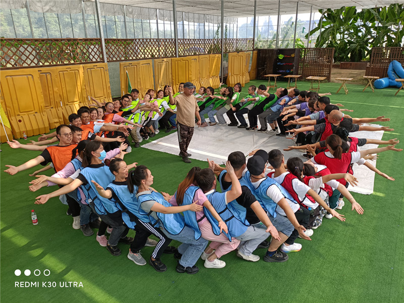 上午9點,在專業教練的帶領下,拓展培訓正式拉開帷幕。活動開場,先來個“一塊五毛”小游戲熱熱身。