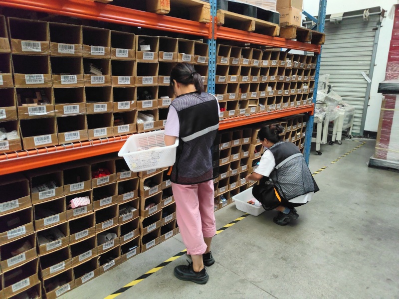 緊接著的分撥環(huán)節(jié),根據(jù)訂單要求,將商品有條不紊地進(jìn)行分揀操作。